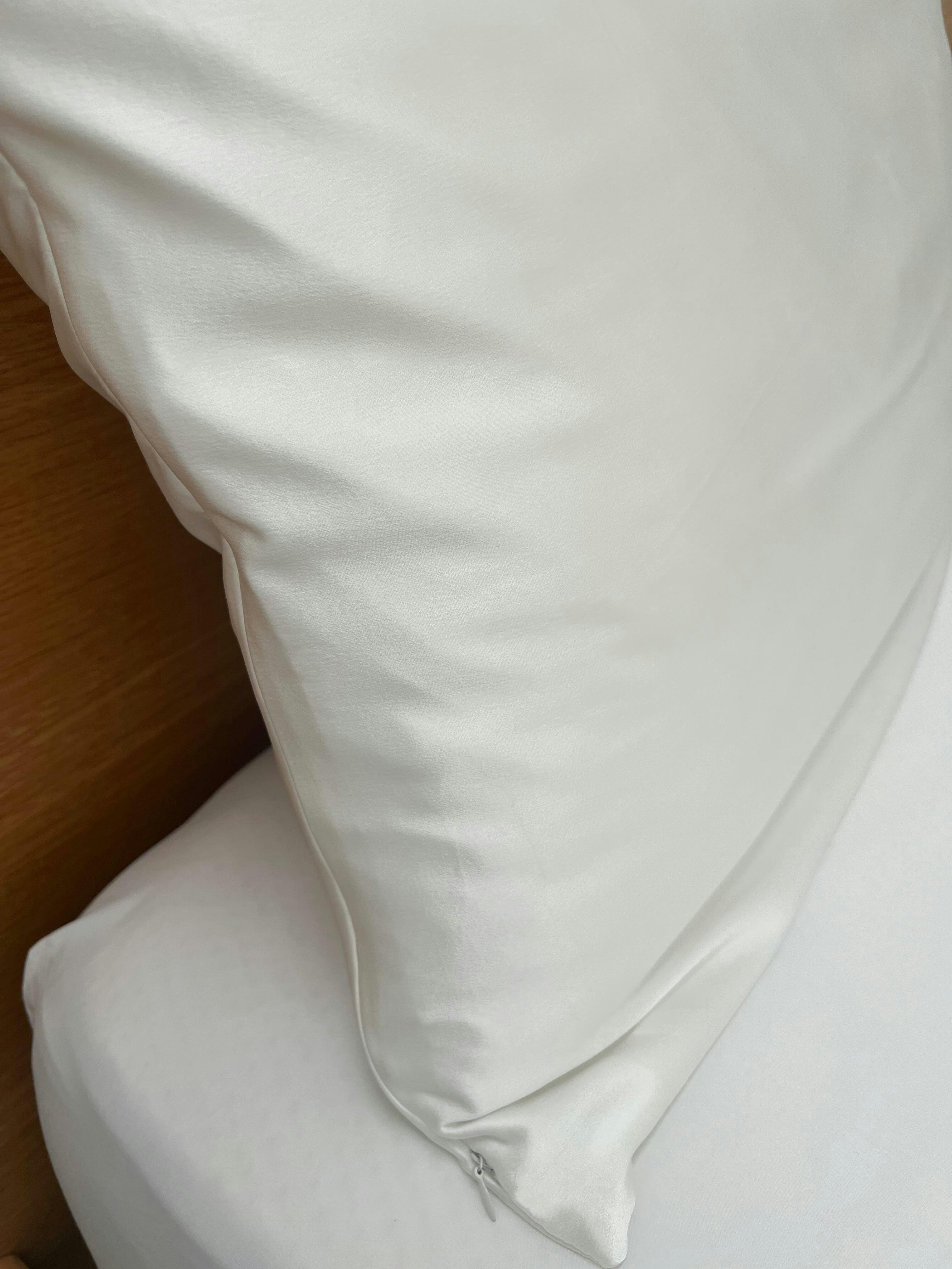 Pillowcase arrived as expected, well packaged and delivered on time. Ordered white which is a slightly creamy white. Well made with a discreet zip to enclose the pillow. Weight of fabric is good; pillowcase feels luxurious and soft and I am very happy with it. Now need to order a second one for when this is in the wash...