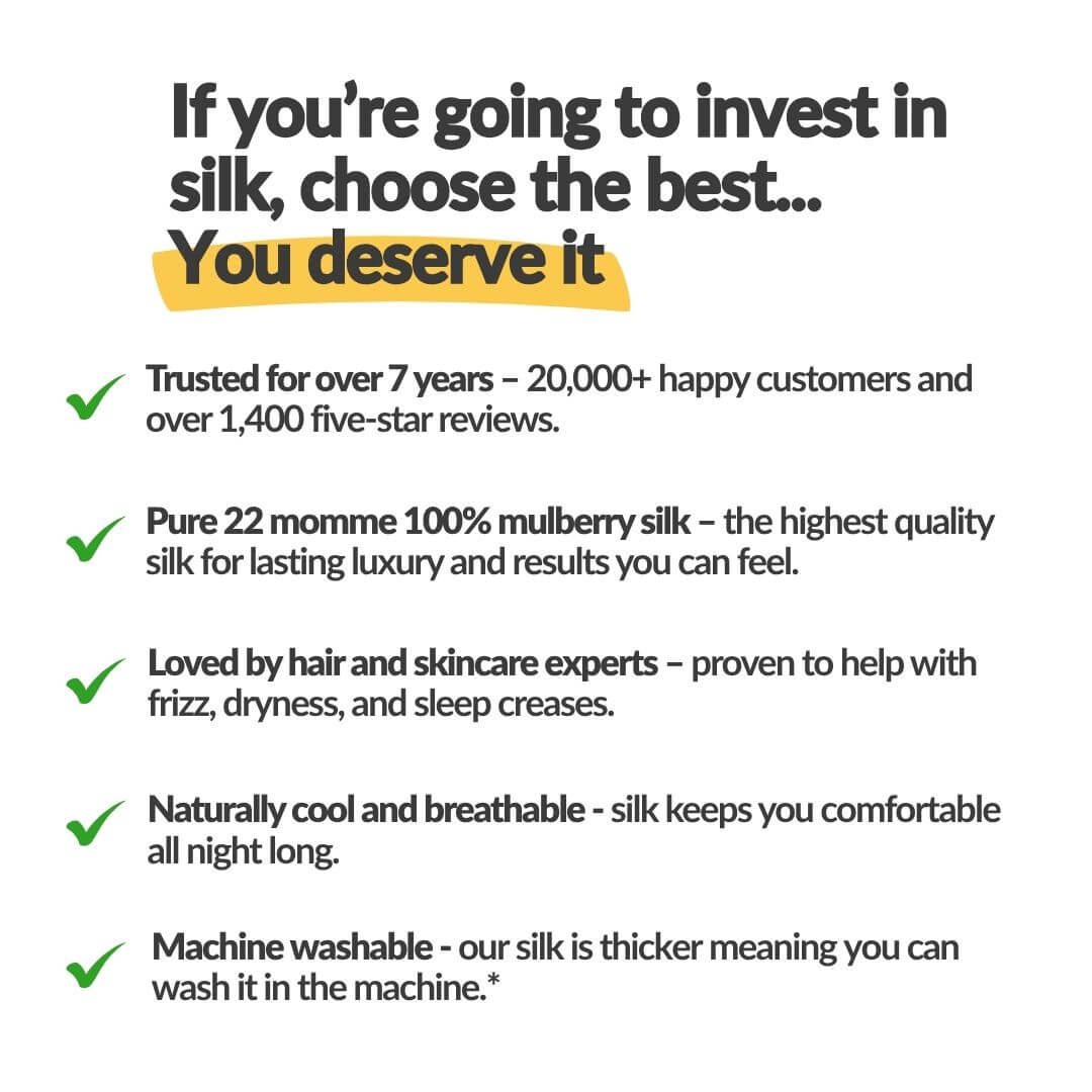 - Sleep on the ultimate luxury silk pillowcase - Loved by over 15,000 customers (see our reviews)